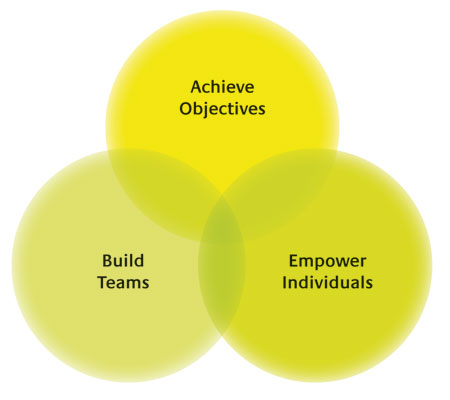 The following leadership model illustrates the integration of achieving business objectives, empowering individuals and building teams: